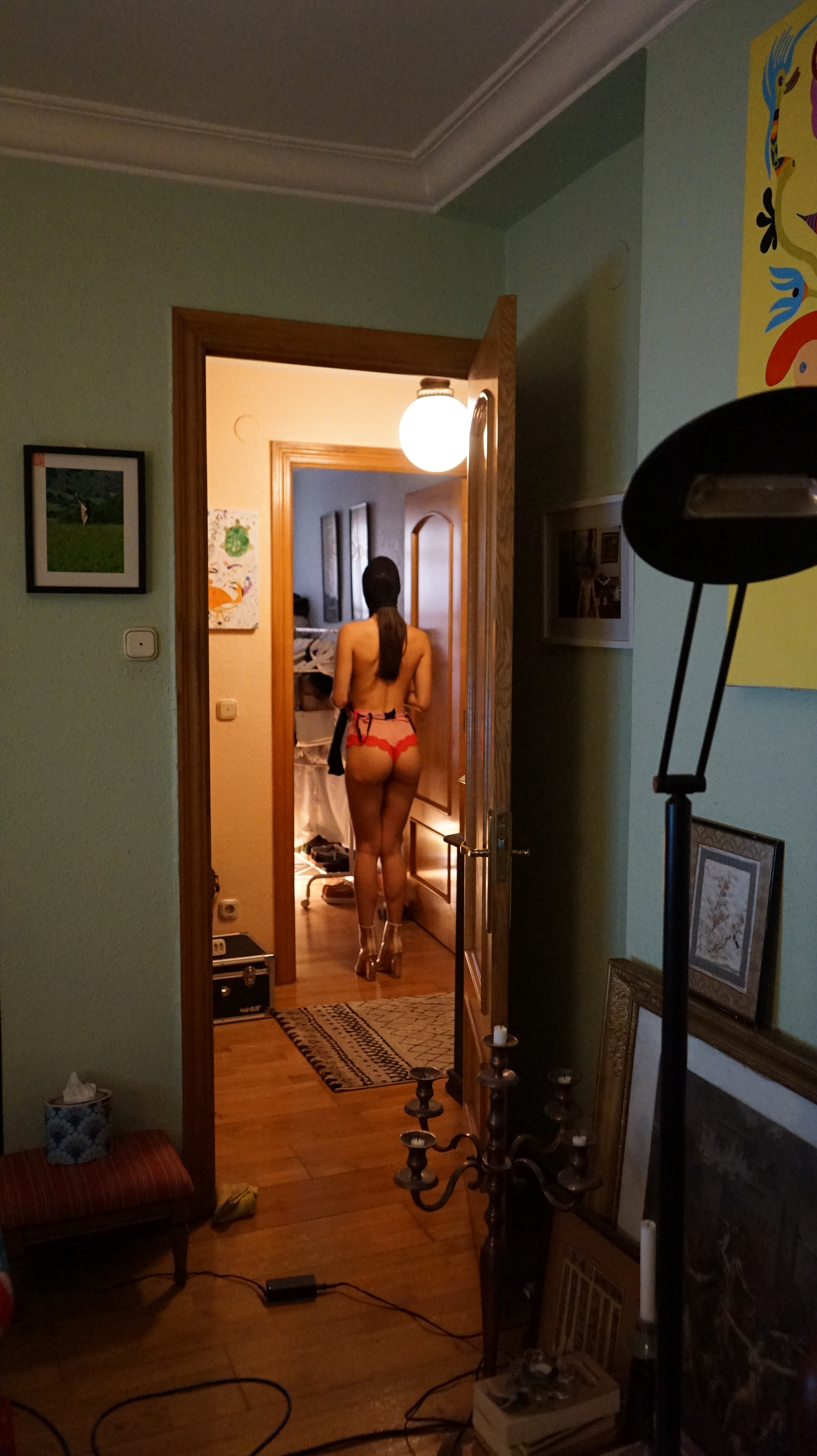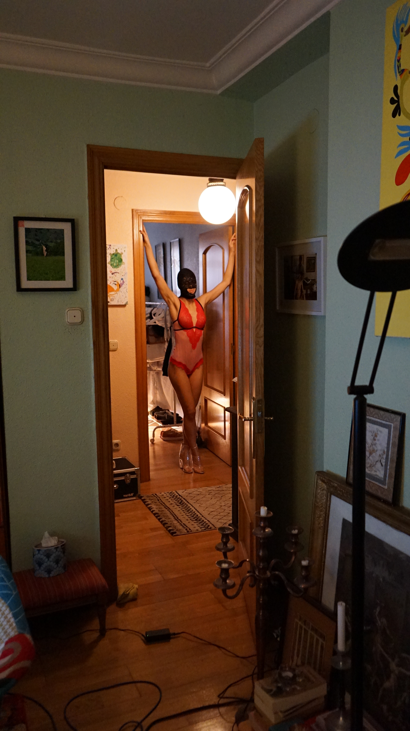 Estas fotos son poco o nada eróticas pero muy divertidas. Pasamos un rato alegre haciendo el tonto. Una prueba. Un experimento. Era cuando ella venía a casa y se quedaba días enteros. Ahora solo se queda horas intensas. Los tiempos cambian y las personas también, las circunstancias … se acepta, se deja fluir sin oposición ni nostalgia.