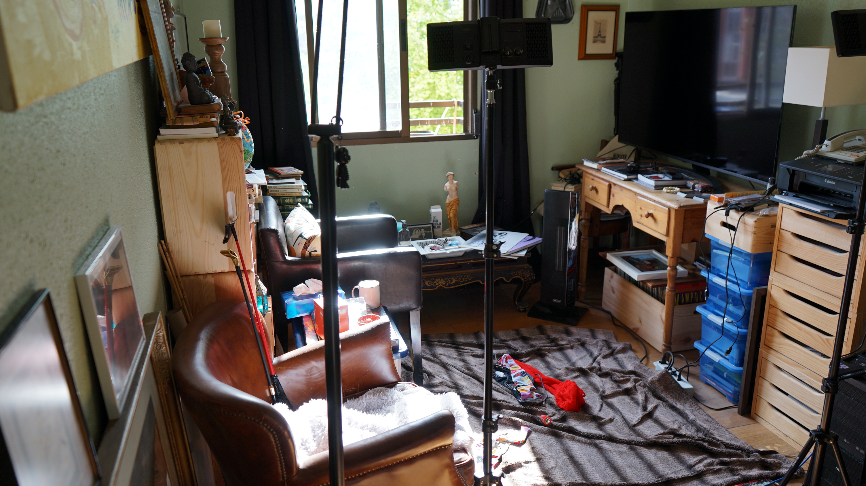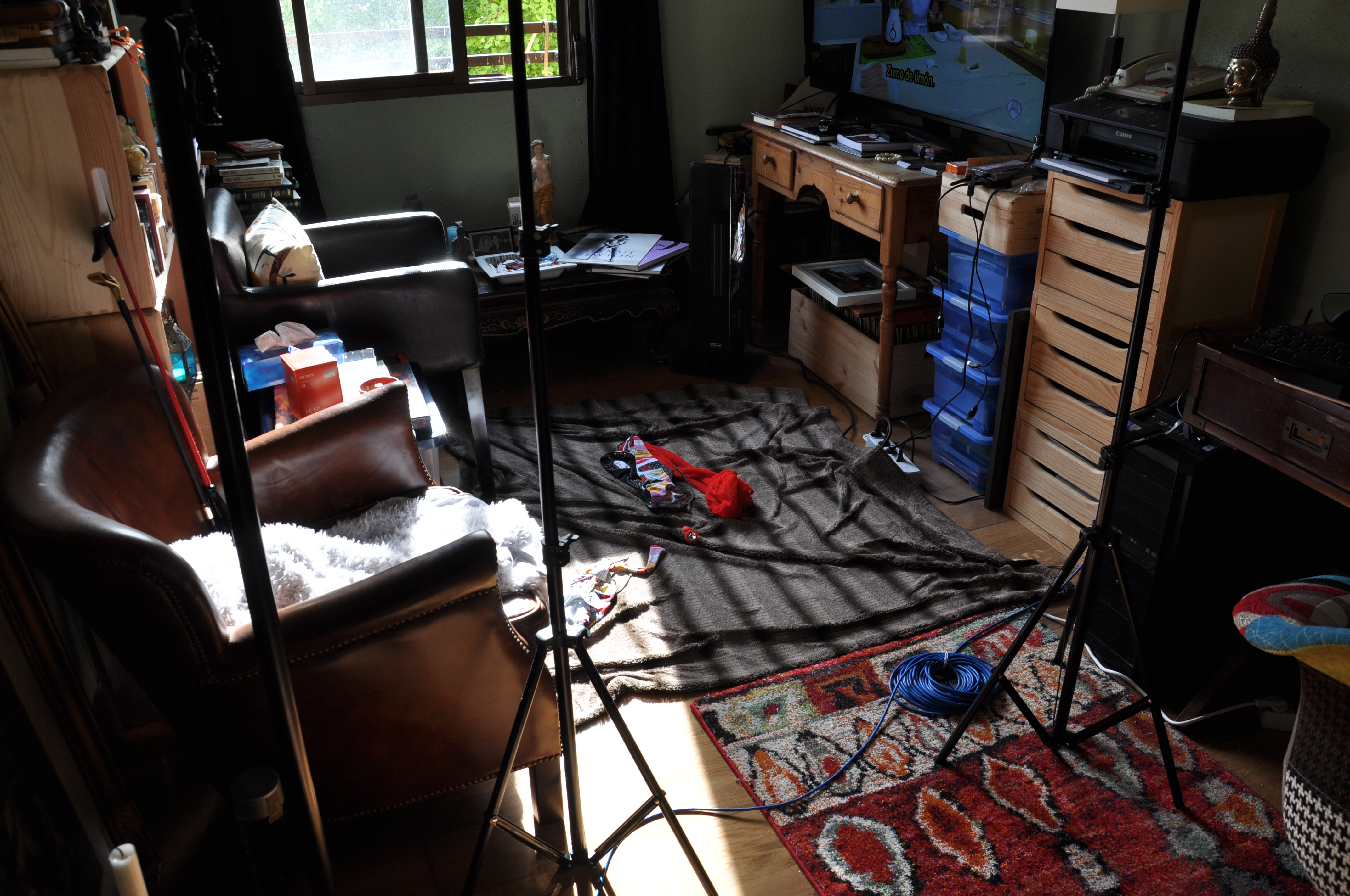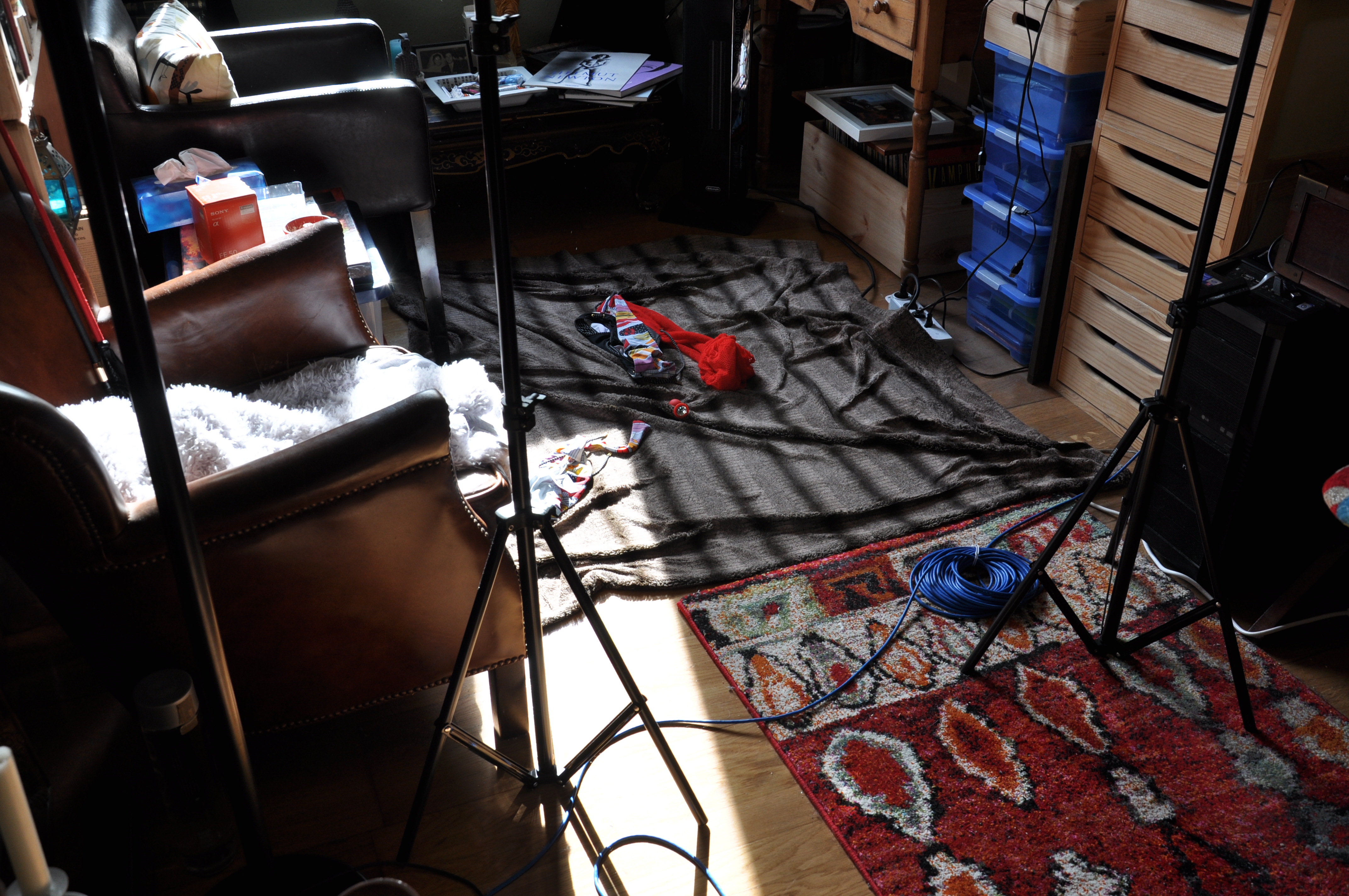 Un descanso en la sesión. Carolina se entretiene a su aire y yo la fotografío entre tomas efectivas. Todo son fotos y videos pero las escenas se distinguen unas de otras y los intervalos son interesantes. Me gusta capatar todo el proceso. De lo contrario tengo la sensación de que falta algo ……